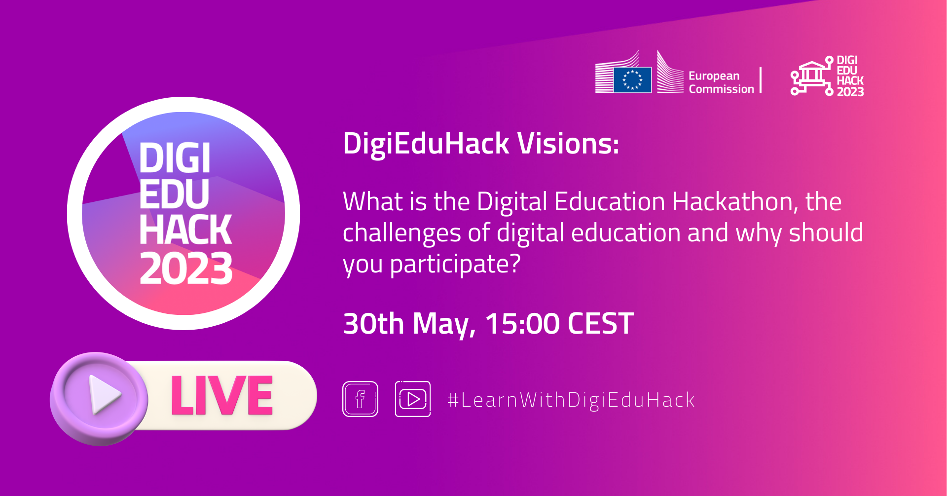 Are you ready for it? There is no registration requirement, though we strongly encourage you to make sure you follow DigiEduHack’s social media accounts to receive a reminder when we go live and to leave in the comments section any questions that you might have for our speakers.